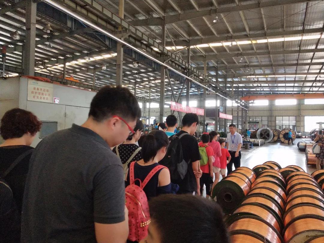 進(jìn)入車間后,學(xué)生們在各個(gè)帶隊(duì)老師的引導(dǎo)下有序地進(jìn)行參觀。從拉絲到絞線,從擠絕緣到成纜,學(xué)生們不僅對(duì)生產(chǎn)流程有了深入的認(rèn)識(shí),而且真實(shí)感受到了電纜的一線生產(chǎn)環(huán)境,收益頗豐。